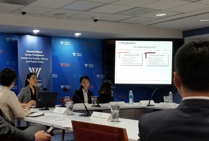Three young South Korean scholars capped six months of research at the Woodrow Wilson Center by presenting their findings to fellow scholars on July 9. Korea Foundation Junior Scholars Bo Kyung Kim, Minjeong Ko and Suna Jeong shared research on accountability mechanism and land reform during state-building periods of three Asian nations; Soviet aid to Vietnam and North Korea, and aid negotiations between South Korea and the United States during the Syngman Rhee administration.